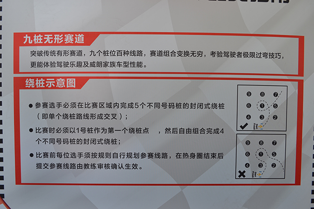 既然是比赛,赛前培训自然不能少。简单说明S弯的赛制、场地规划和注意事项后就正式开始。看似简单的九个桩桶所组成的场地,实则暗藏关键点。
