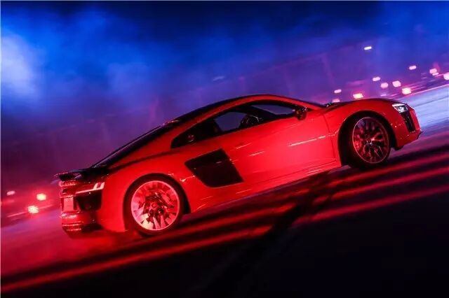在备受瞩目的Audi Sport新车发布会当晚,主场馆被设计成奥迪V8发动机引擎的造型,伴随着有律动的激光秀和让人亢奋的引擎声从远处传来,三款新车从场馆下面的跑道飞驰而过,整个场馆都为之一震。仿佛身处引擎当中,耳边留下的只有引擎和疾风呼啸的余音,即便结束两天后,如此视听盛宴至今还历历在目。