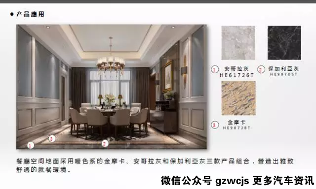 这是大平层公寓项目的瓷抛砖应用。大家可能会问,这是一种什么风格呢?我建议大家尝试“去风格化”。因为,我们的室内空间与建筑外观不一定是同一种风格,有可能建筑外观是现代风格,而室内是欧式或中式风格,只要空间的色彩与功能协调即可。