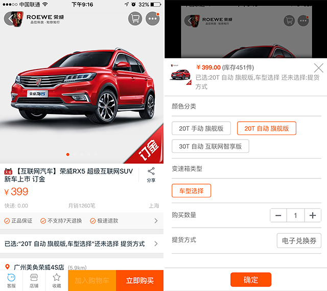 非一线城市人群:推荐RX5 20T自动/手动旗舰版,配置够齐全了,争取前2万名送全景大天窗。YunOS暂时派不上大用场,不过远程手机控制还是挺有用的,不差那一万块钱可以考虑。