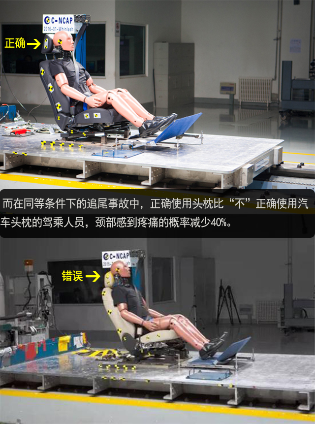 在发生车祸时,碰撞所产生的巨大冲击力将全都挤压在脆弱的颈部,即使车速只有10km/h,如果得不到头枕的保护,很可能造成颈椎损伤甚至成为致命伤。资料显示,在26%的追尾事故中,驾乘人员的头部或颈部会受到损伤。