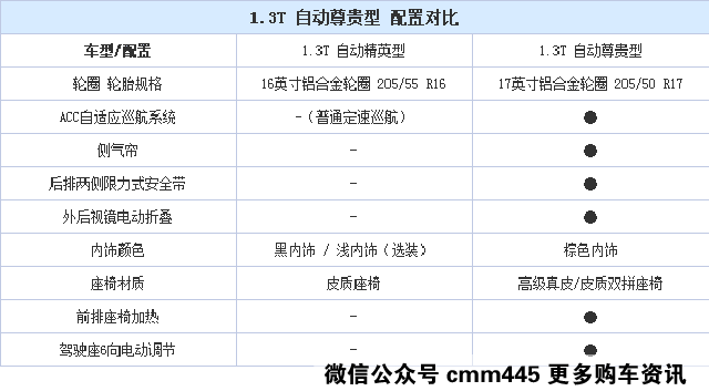 精英版已经很好的满足消费者的用车需求了,所以1.3T自动尊贵型尤其是旗舰型对于预算不是很足的消费者来说,没有什么必要了。不过尊贵型多花了1万元,增加的配置还是值得的。