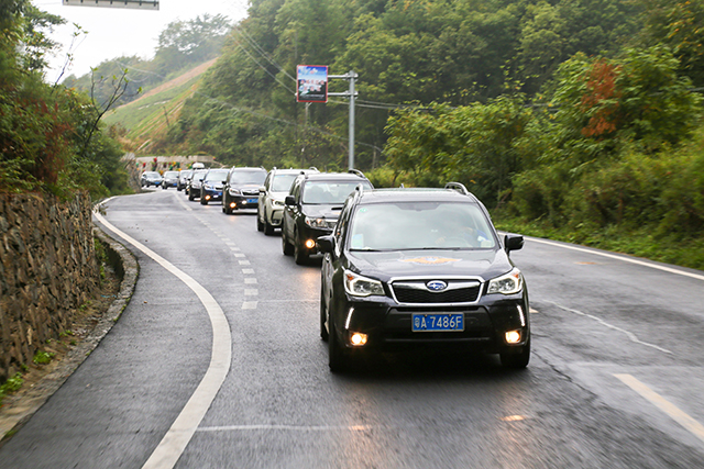 FORESTER森林人,来自全国各地的100辆斯巴鲁森林人,一起回归到森林-神农架林区,往神农顶景区进发,车辆行驶在连绵不断的蜿蜒山路中,天下着雨,路面稍有积水,湿滑的路面再加上从山体上滑落的小碎石,尽管路况不佳,但是森林人在整个山路行驶的过程中,却表现出了如履平地般的自信,各个编队都有序前进。