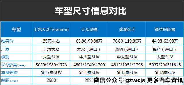 在前面教授已经提及到了,上汽大众Teramont定位为一台全尺寸的大型SUV,那么究竟有多大?我们来看一看一下数据。