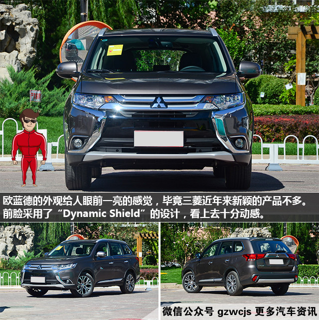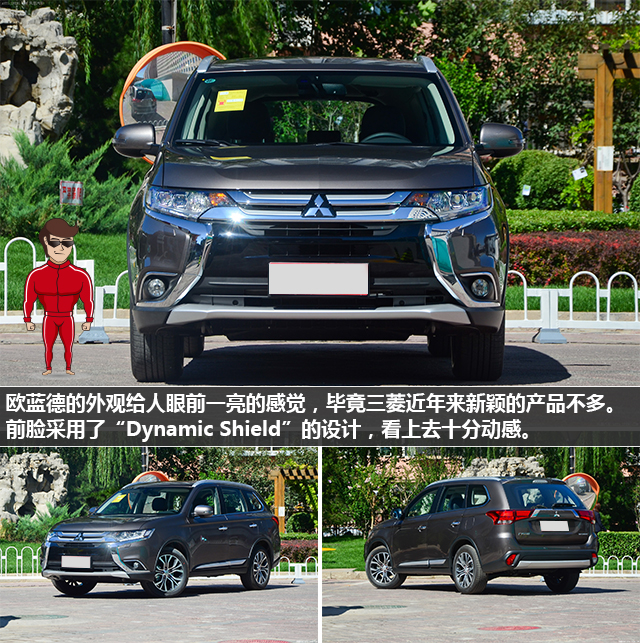欧蓝德的外观给人眼前一亮的感觉,毕竟三菱近年来新颖的产品不多。前脸采用了“Dynamic Shield”的设计,看上去十分动感。大灯方面也不寒酸,LED近光灯和LED日行灯都有配备,尾部的护板和防擦条也是少不了的,看起来更有野性了。