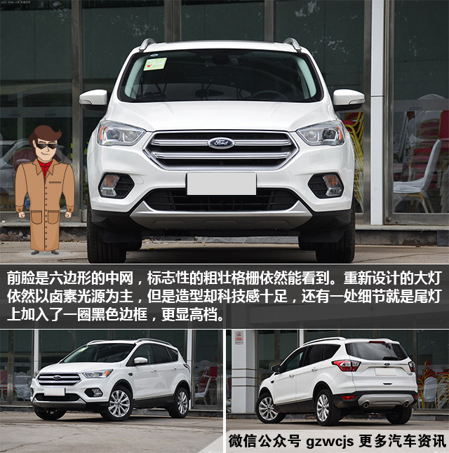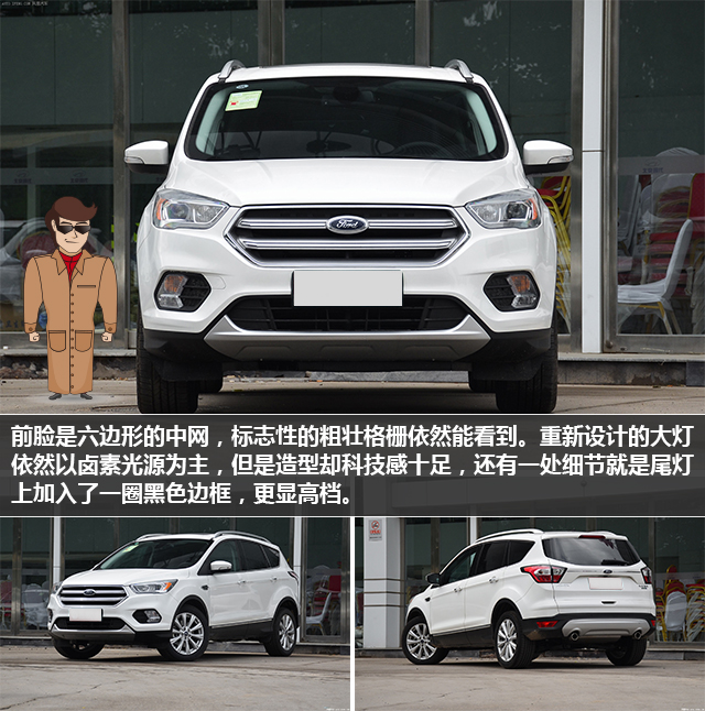 翼虎就像是一辆缩小版的锐界,外形时尚的同时又透露出些许野性。前脸是六边形的中网,标志性的粗壮格栅依然能看到。重新设计的大灯依然以卤素光源为主,但是造型却科技感十足,还有一处细节就是尾灯上加入了一圈黑色边框,更显高档。