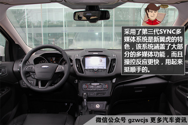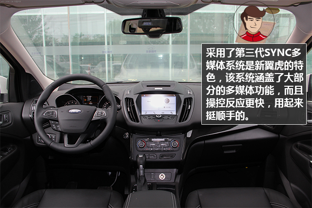 内饰设计的新鲜感并不多,倒是内饰线条颇有层次感,不至于视觉太疲劳。采用了第三代SYNC多媒体系统是新翼虎的特色,该系统涵盖了大部分的多媒体功能,而且操控反应更快,用起来挺顺手的。