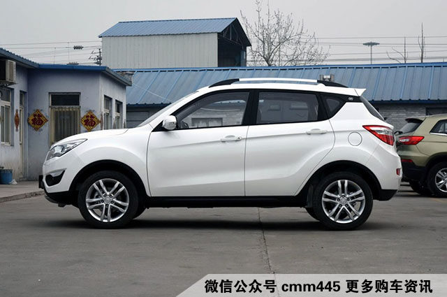 而在车身侧面,编者很明确地告诉你们没有放错图片,这确实是陆风E36的侧面造型,几乎和长安CS35一个模具出来,难道它们都请了同一个设计师?而且也使用了相同的五幅式铝合金轮毂。