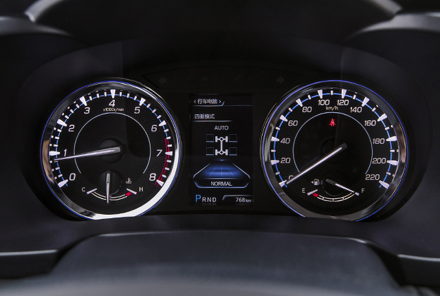 三种驱动模式(2WD,4WD-AUTO,4WD -LOCK)智能切换,为适时四驱,时速40公里内一键LOCK锁止功能。驱动力分配实时动态显示,前轮60%,后轮40%。
