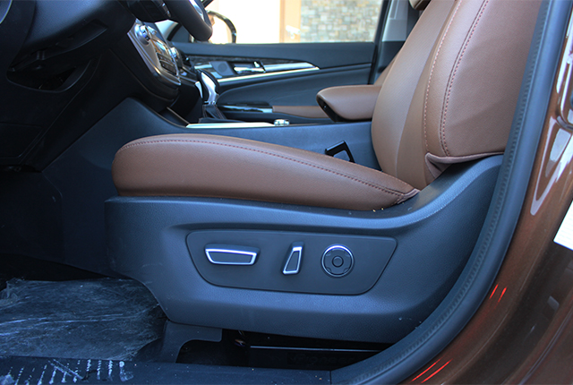 这款顶配级的主副驾座椅带电动按摩功能,车辆熄火后主驾座椅会自动后移,方便下车。