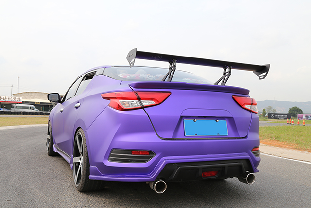 与前脸对比,车尾的设计明显要平淡不少,不要着急,塞翁失马焉知非福,这不是挺好的吗,留给我们更多的发挥空间,我们可以在原厂的小鸭尾上加一个更加明显的一体式尾翼,也可以夸张一点,加装一个赛车化的大扰流板(俗称尾翼),当然,也可以任性一点,就像下面这位车友一样,两样一起上。