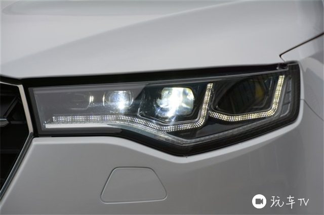 首先说到外形。我们还是能看到些许借鉴痕迹,前脸大尺寸的进气格栅,六边形镀铬装饰件采用星空中网点缀,远近光均为LED光源,灯组整体看起来和A6相似。
