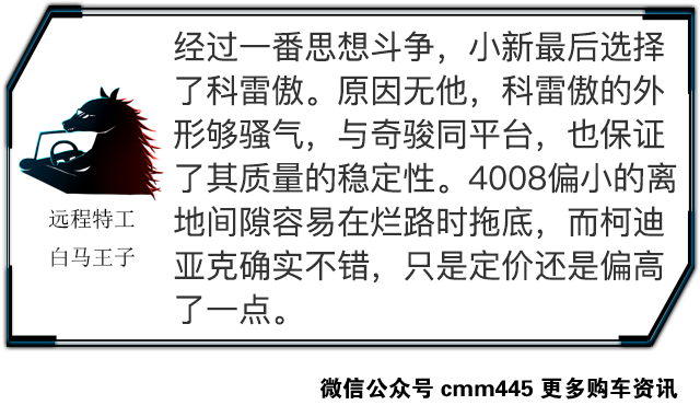 小新:“4008外形确实够炸,但离地间隙有点小,而且车身尺寸不是很大。”