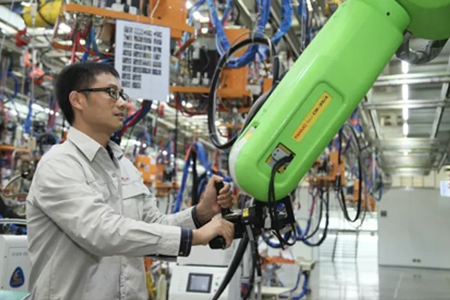 然而在日产的工厂里,这样的情况已经有所改变了,因为他们开发出一种绿色友好机器人,这种机器人具备接触停止、推按退避、触碰回退功能,无需安装安全围栏,不划危险区域,人和机器人能共享工作区域,并可以通过牵引手柄引导机器人工作。不仅有更高的工作效率、更小的占地面积,而且告别了冷冰冰的机械人,让工厂的人机交互氛围更加友好。