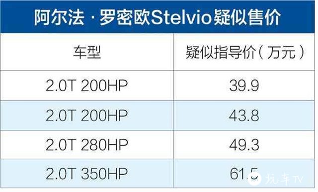 虽然即将在6月3号开幕的深港澳车展在国内的存在感不算强,但是却会发布一款重要的新车,那就是阿尔法罗密欧Stelvio,重要的是甚至曝出最低43万的预售价,如果和市面上的对手相比,居然还能和性价比能搭上关系。