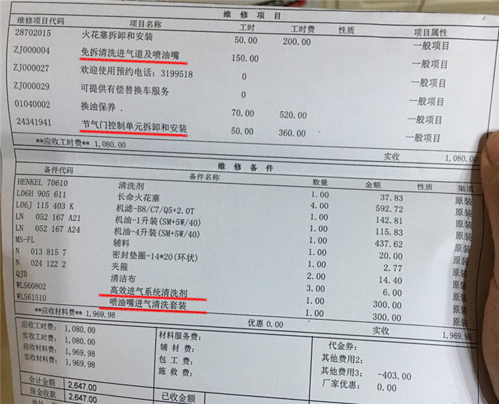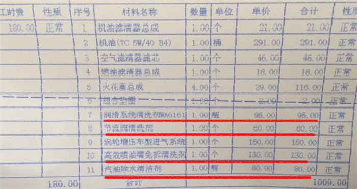 该网友对这类项目不了解,本着对车好的原则就做了,直到最后买单才发现,这两个项目的花费达到了1000多元。