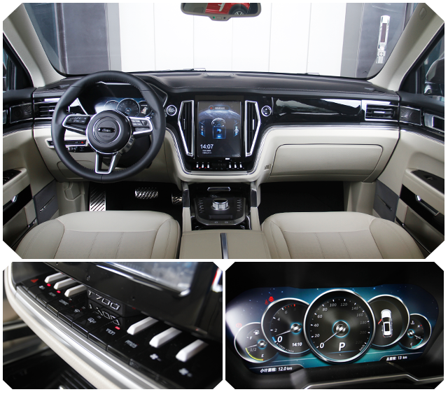 我在设想一个场景,当一个陌生人进入到T700车内时,迎宾踏板自动弹出,一键启动看到缓缓升起的变速箱旋钮,再看到布局周边的密密麻麻的功能按键,他应该会问:哥们,这车应该要二三十万吧?
