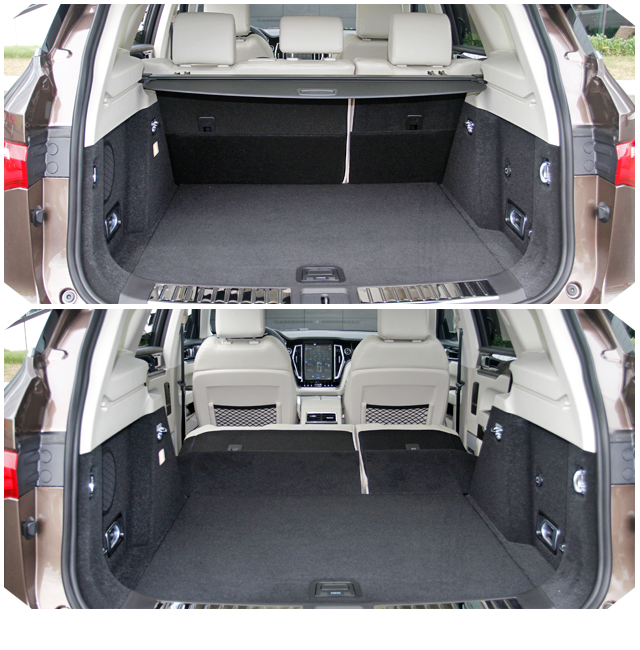 常规容量达到850L的后备箱一点不小,而且也支持后排比例放倒,但有一定的斜坡比较可惜。尾门支持电动关闭以及感应开启功能,这两点对女性用户来说都比较实在。