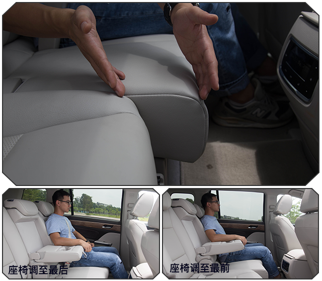 第二排空间的宽敞感也足够令人满意,坐在第二排的乘客轻松跷二郎腿是没有问题的。第二排座椅前后移动的范围大概在10cm左右,调至最前的话乘坐起来也没有明显的局促感。另外,第二排座椅还具备了靠背调节功能,你很容易便能找到一个舒适的坐姿。