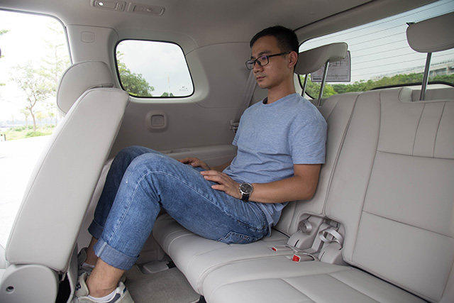相比之下,第三排的空间表现就要逊色多了,腿部空间几乎没有余量。而且第三排座椅坐垫的位置太低,坐垫长度也不够,长时间乘坐会有不适感,这也是目前大部分7座SUV存在的通病。