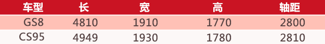 按理来说,GS8的空间表现已经算非常出色了,但是随着CS95的上市,GS8的优势就没那么明显了。