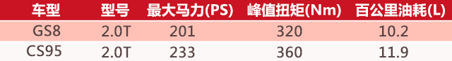 虽说GS8的动态性能比起汉兰达、锐界要更优越一些,但对于CS95这个半路杀出的“程咬金”就有些招架不住了。长安CS95搭载的这套“蓝鲸动力”的实际效能非常不错,涡轮介入时机早,因此起步的流畅度要比GS8更为直接。而且CS95还带有超增压模式,转速突破2000rpm之后,提速超车更为轻松。