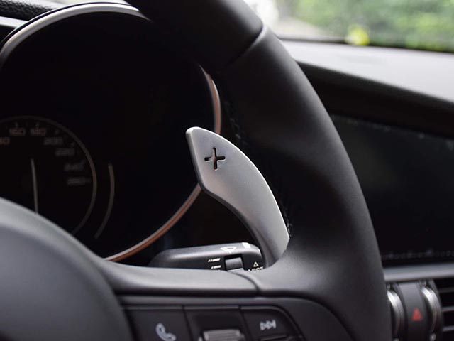 方向盘换档,即换挡拨片,作为一种快捷的换档设备,能够很大程度上提升驾驶的操作性。换挡拨片一般位于方向盘后方。在操纵换挡拨片时,驾驶者一般只需将挡位推入D、S或手挡模式。利用换挡拨片,驾驶者双手不离开方向盘就可完成升降挡操作。