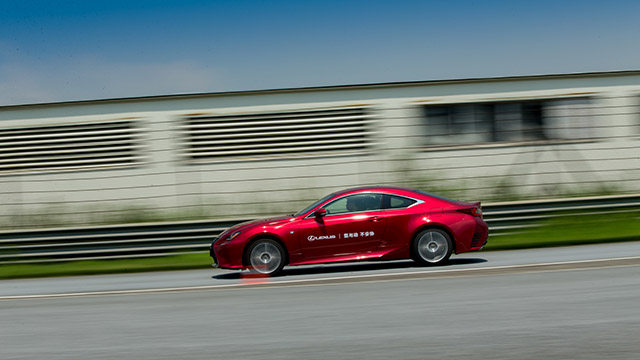 过完连续弯,进入大直道后油门到底,RC 200t的声浪确实比IS 300听着更爽,不过这全是ASC主动声浪模拟系统的功劳。我瞄了几眼仪表盘,直道尾速160km/h。入弯前松油,再大脚刹车,1.7吨的车重还是让我下意识的再深踩了一下刹车踏板,毕竟我也怕因为太重刹不住,直接冲入波波池(缓冲区)。