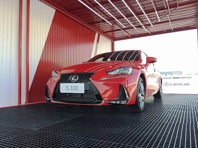 顶着烈日到达肇庆赛车场之后,休息室门外停着一台鲜红色的IS 300,把我眼睛晃得生疼。这也是IS 300的重要更新之一:除了外观微调之外,IS 300新增了烈焰红、蓝焰色、音速灰几个新颜色。