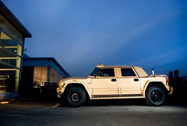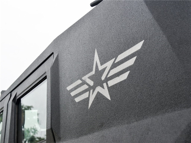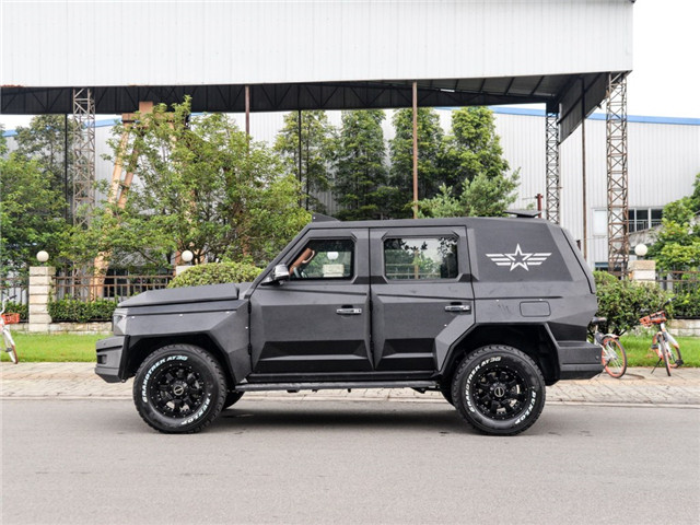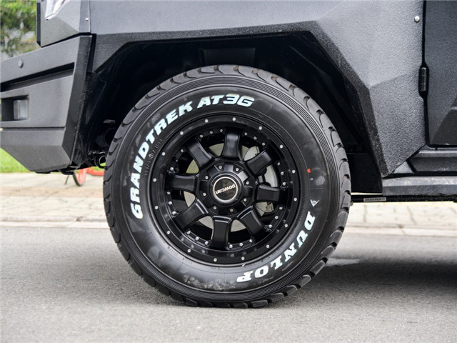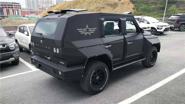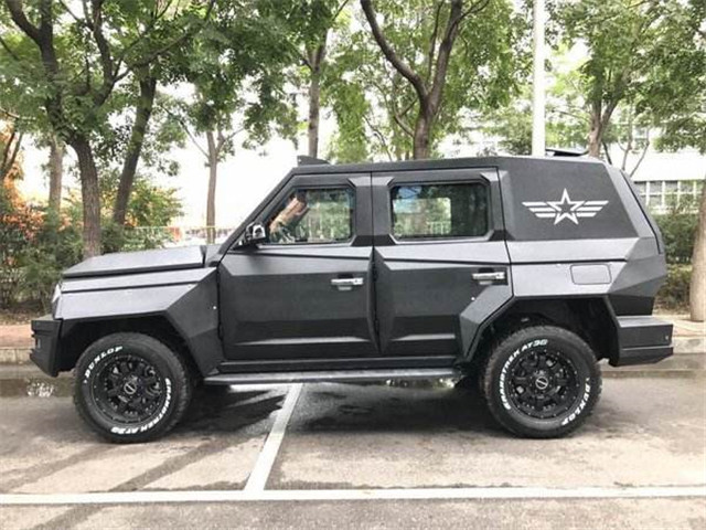 而车身表面也是很特别的,采用了亚光色涂装,披上了厚重的钢板,并经过了高温喷砂处理。车窗采用的则是高强度的复合玻璃,厚度应该比一台苹果7还要厚。