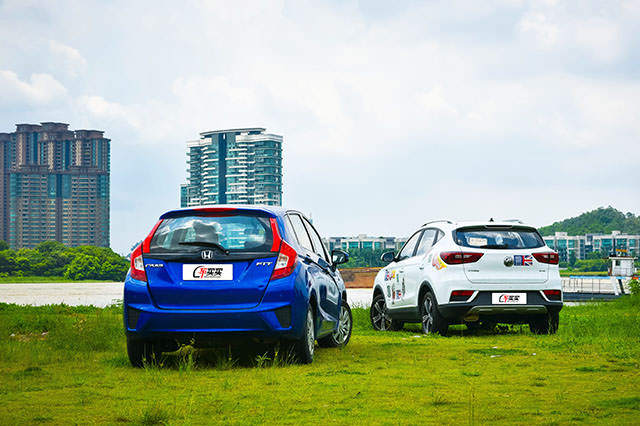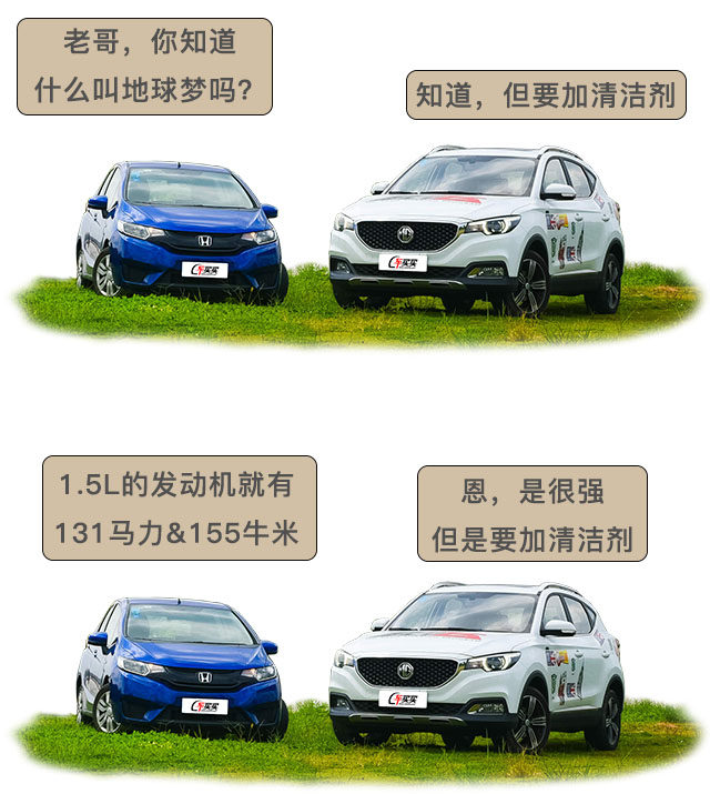 反观MG ZS就会发现两个车的差异很大,MG ZS尺寸比飞度大很多,飞度和ZS停一起就好像郭敬明和姚明一样的差距,虽然本田的空间利用率高,但是架不住人家基础面积大啊,所以在空间上ZS就比飞度更好,最主要差距体现在后备箱空间上,ZS比飞度大了不止一星半点。