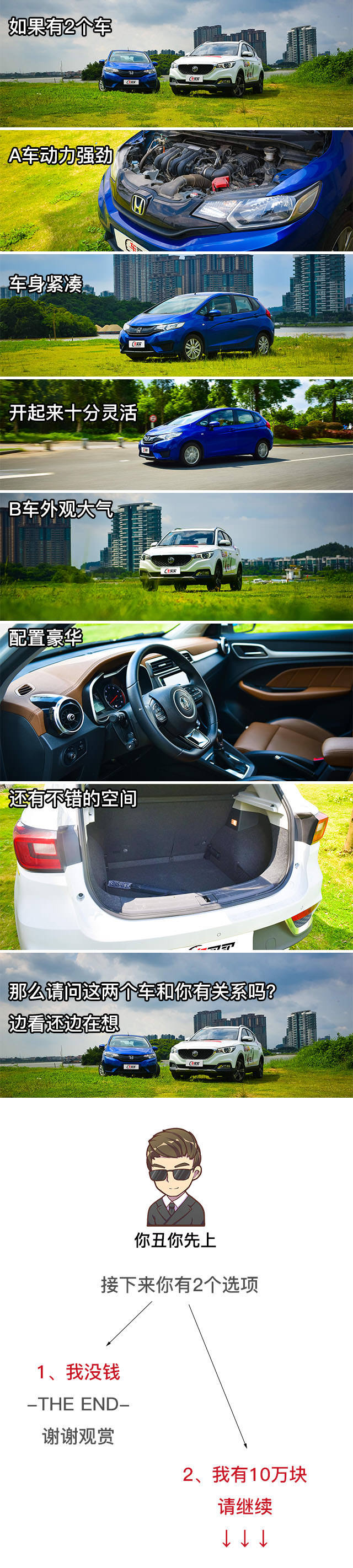 如果你不在乎配置,不在乎豪华感精致感,就要一个酣畅淋漓的动力和人车一体的畅快感,那么毫无疑问选飞度,不过对于大多数人来说,买车不可能只要动力和驾控;对于在乎家人的感受的年轻人来说,ZS则好太多了,装备更豪华,悬架更柔软,外观更加大气开出去有面子,空间也更宽敞,高离地间隙还能偶尔上个草坪、马路牙子什么的,从实用角度考虑显然ZS更好。