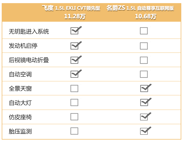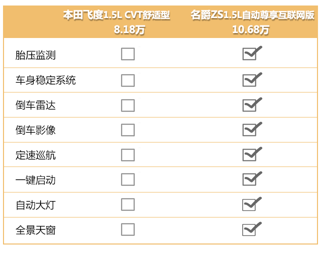 (注:由于两车指导价相差了2.5万,所以在配置上ZS优势更大)