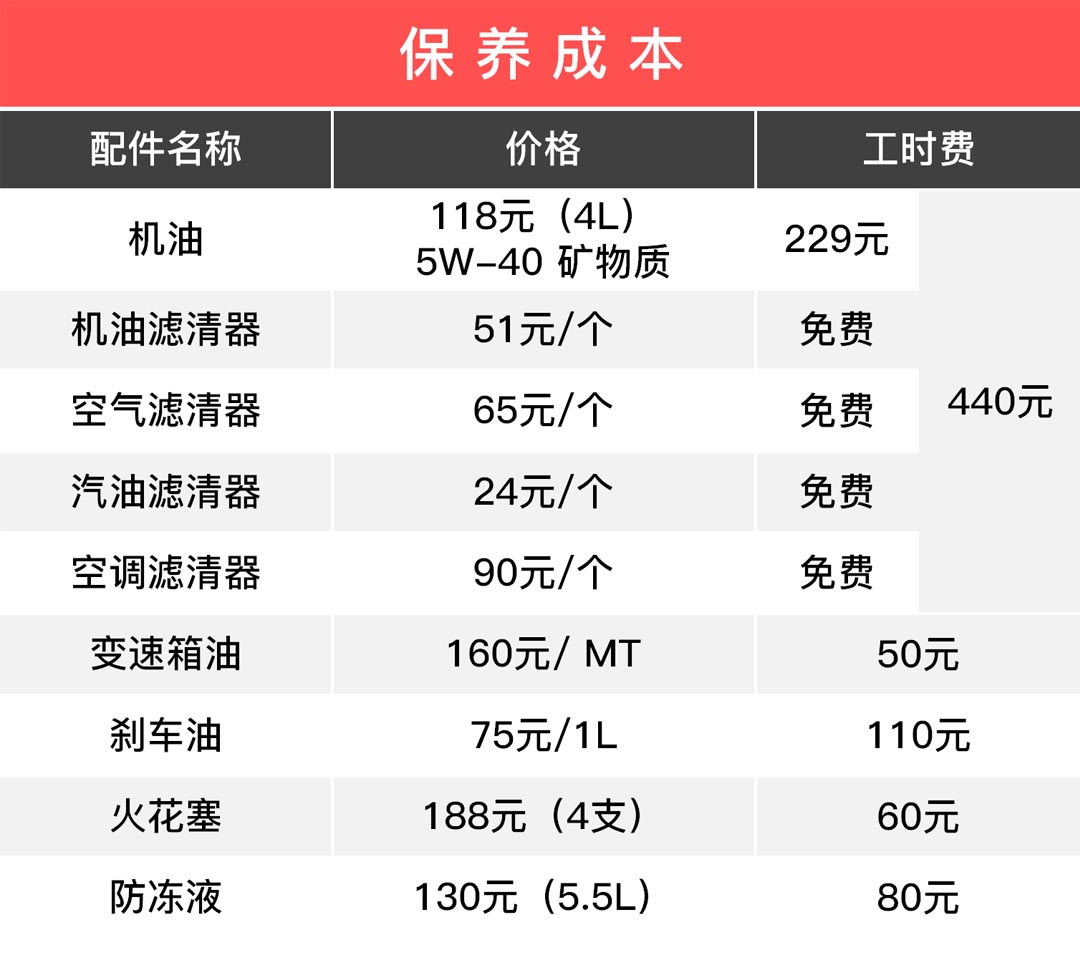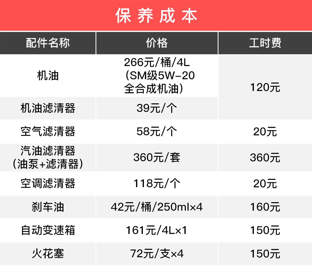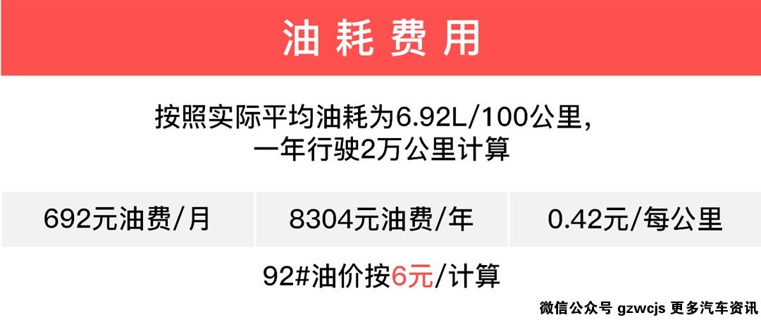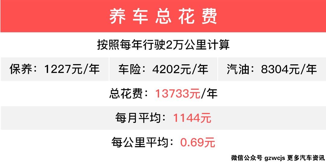 在油耗方面,0.39元每公里的成绩还是非常吸引消费者购买的。按照两万公里一年进行计算,每个月仅需要花费657元的油费。