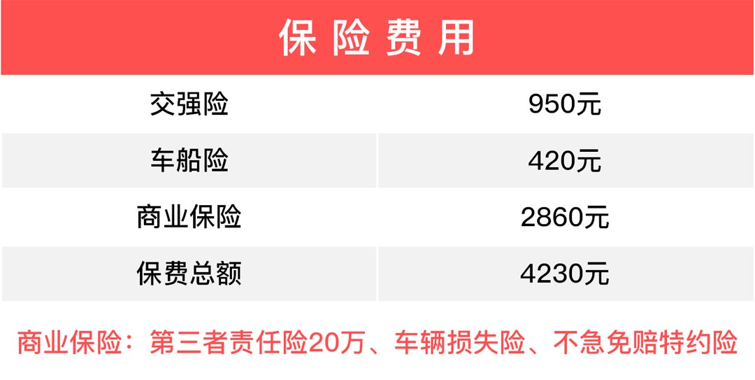 根据我们的调查,一般购买这些车的消费者都比较注重性价比,所以在商业责任险这一项,我们选择了20万(只要离豪车远点就好了)。从总的保费来看,平均下来就是每个月352.5元,还是能够接受的。