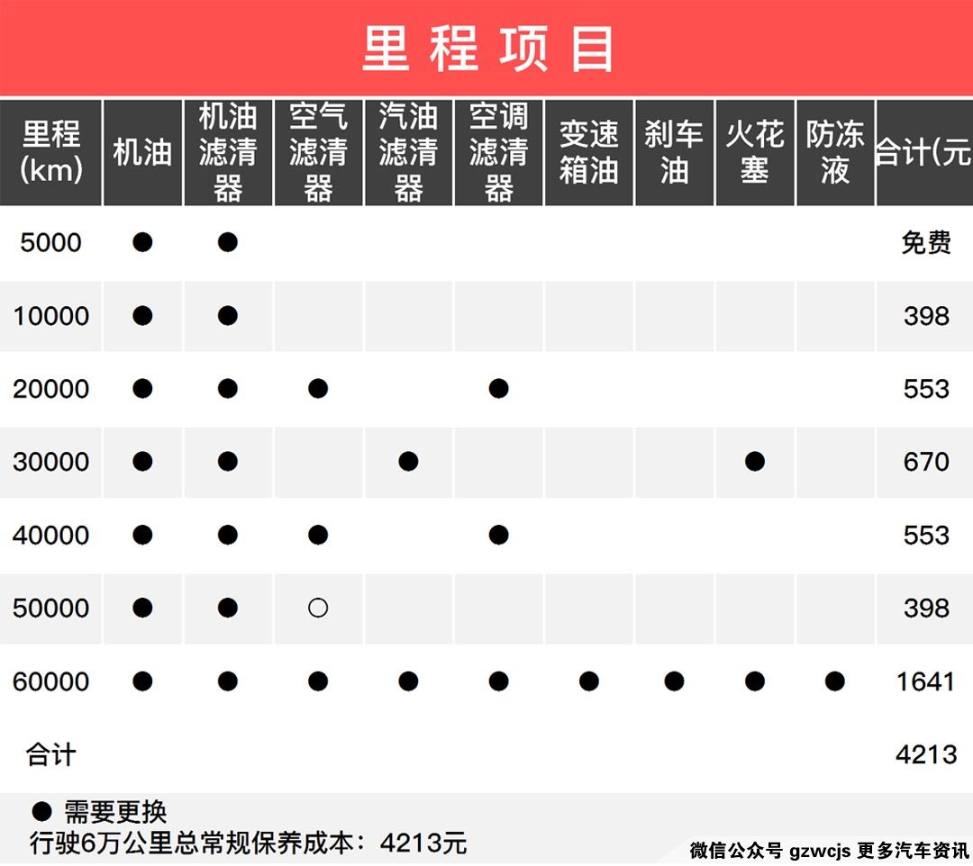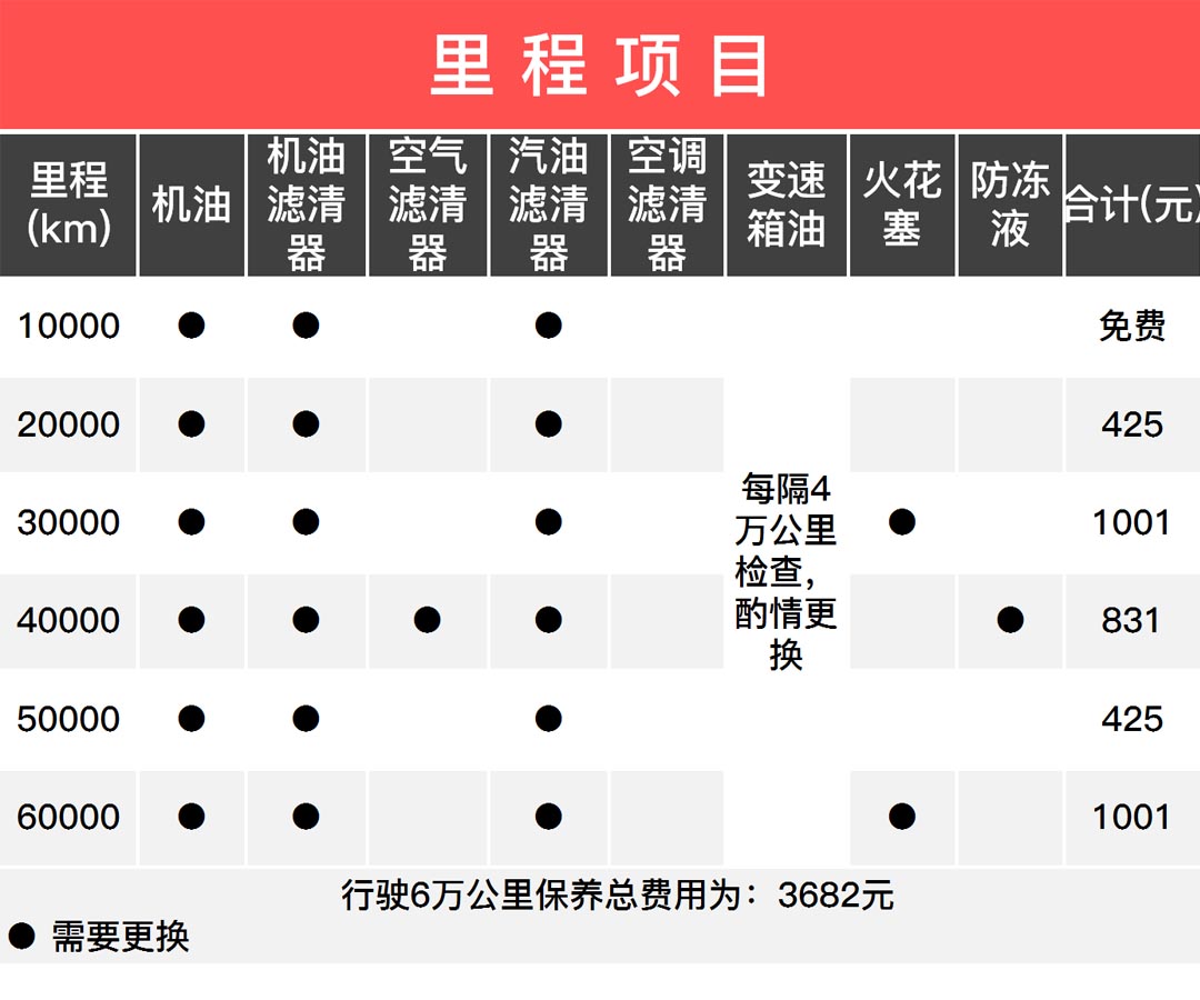 从上图可以看出,厂家的建议的保养项目是非常简单的,但是与捷达相比,在小保养的的项目中多了更换汽油滤清器,所以在费用上相对比较高一些。同时,在更换配件的价格上也相对比较高一些,所以购买威驰更需要注意后期的保养成本。