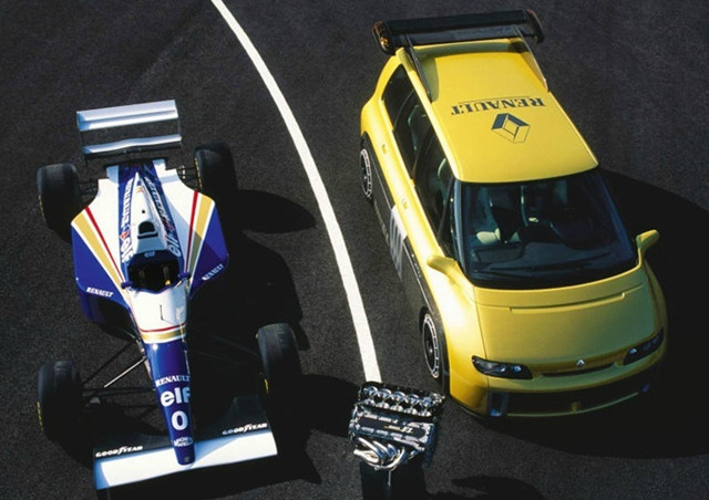 雷诺Espace F1概念车诞生于1994年,当时正值雷诺Espace车型诞生十周年,公司便借此联合Matra,设计制造出了这辆几近疯狂的Espace F1以示庆祝。