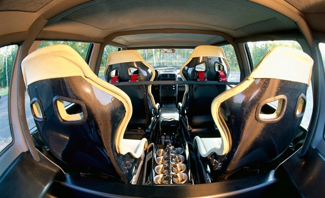 更夸张的是它的那具V10发动机就裸露在乘员舱内,伴随着F1发动机的咆哮声,想想都醉了!