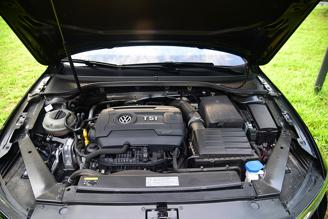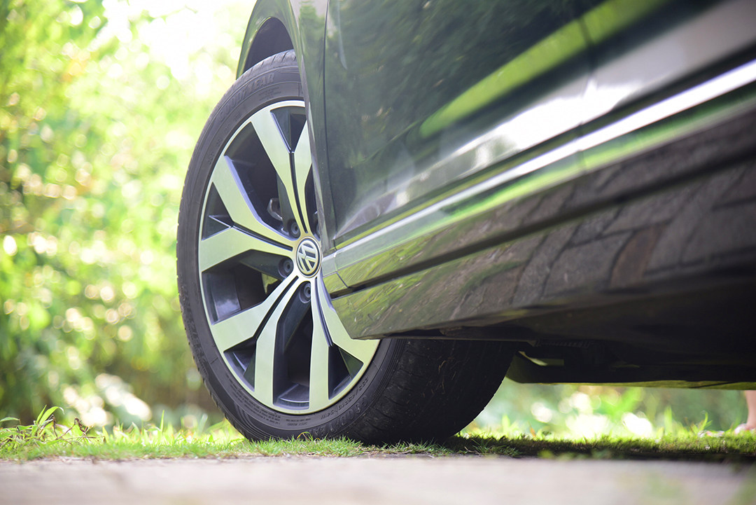 虎哥试驾这台高配车型配备了四条235/45 R18的轮胎,轮毂造型也很帅气,不过这些都是顶配的专利,低配2.0T车型轮胎规格仅仅215/55 R17,要知道2.0T车型的马力比较大,使用这样的轮胎很容易突破抓地力极限从而打滑,其它竞品2.0T车型也基本使用了更宽的轮胎,所以迈腾这轮胎还真能成为一个槽点。