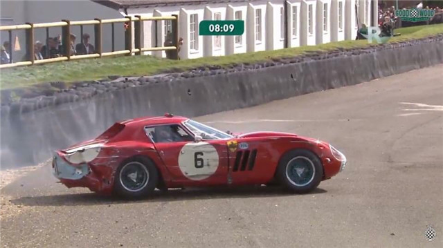 事实还真是这样!正好在昨天的古德伍德复古节的比赛中就有一辆250GTO悲剧了。