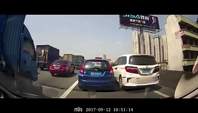 从视频中可以看出,行驶在主路上的蓝色飞度右方突然窜出了一辆白色艾力绅,想要强行插队,在遭受到蓝车车主的强硬阻拦之后,白车车主一气之下从左后方超车上来然后恶意别向了蓝车车主。接着就是两车的“尊严之战”了,谁也不让谁,最后双方都逼停在了拥堵的道路上,影响了后车的正常行驶。