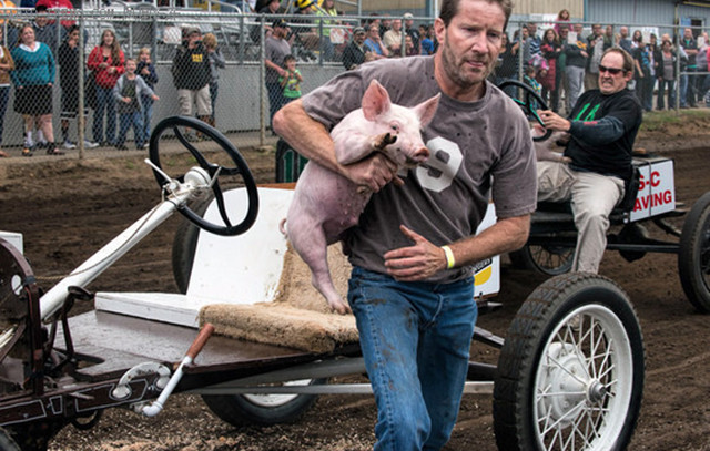 该比赛每年八月都会在美国提拉穆克县的博览会上举行,组委会要求参赛选手必须使用手摇启动的T型福特车。比赛开始后,选手需要先捉住一头20磅重的猪,然后像手摇拖拉机一般手摇启动T型福特车,并抱着猪驾车一圈回到原点,然后再把猪放回并重复刚才的步骤。最后在三圈的比赛过程中车不熄火,并且没有丢掉手里的猪的选手将会获得冠军。