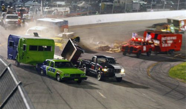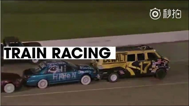 此项比赛发源于北美地区,每三台车连成一辆参赛车辆,并且只配有两位驾驶员,其中一个在头车控制方向和加速,另一个在尾车控制刹车,所以在场上就可以看到汽车大乱斗的场面,想想真是脑洞大开!
