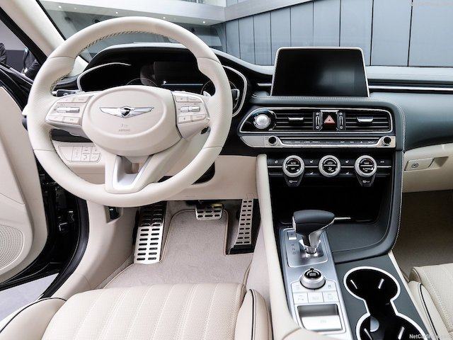 三幅方向盘,悬浮式屏幕,电子档把,内饰方面也透露出G70的运动取向。