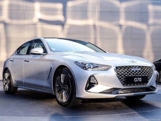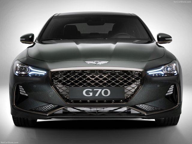 G70采用了捷恩斯品牌的六边形大嘴巴设计,锐利的前大灯和复杂的进气口为它增添了一份运动感。
