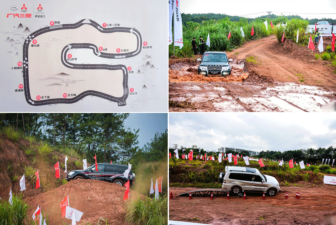 侧坡很有意思,当时候第一次是试乘体验,教练特意将帕杰罗停在30°多的侧坡上,坐在车上确实心惊胆战,感官上车辆已经有60°的侧倾,处于翻车的边缘,实在担心车辆在起步的时候就马上打滚。但这样的顾虑是多余的,平稳的起步,重回平稳的泥路,不禁用手拍一拍胸口,有种大难不死的感觉,而当自己体验的时候,害怕感就降低不少了。如果是换作一辆城市风格取向的SUV来测试这些项目的话,恐怕第一个深水池环节就已经GG了。