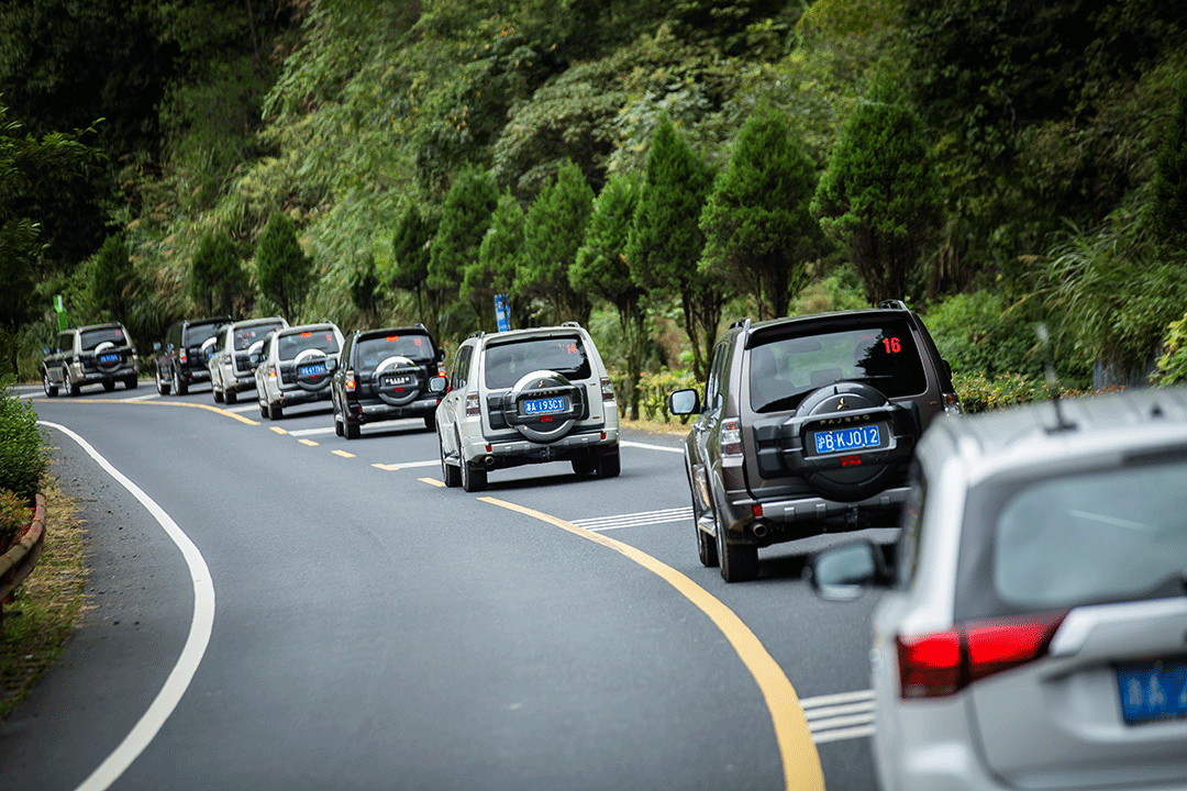 浩浩荡荡的车队出发了,新款的帕杰罗更多是在配置上的升级,基于安卓系统打造的中控大屏就是升级的一项,内饰的整体风格还是偏向于中年人的审美观,不少地方都使用了实木装饰,像红色双缝线、拼色座椅、氛围灯以及液晶仪表盘这些时尚元素就不能奢望了,帕杰罗不走年轻消费者的市场,因为有那三四十万,年轻人都去买宝马了。但帕杰罗开起来的乐趣,却是宝马乃至绝大部分豪华轿车所不拥有的。