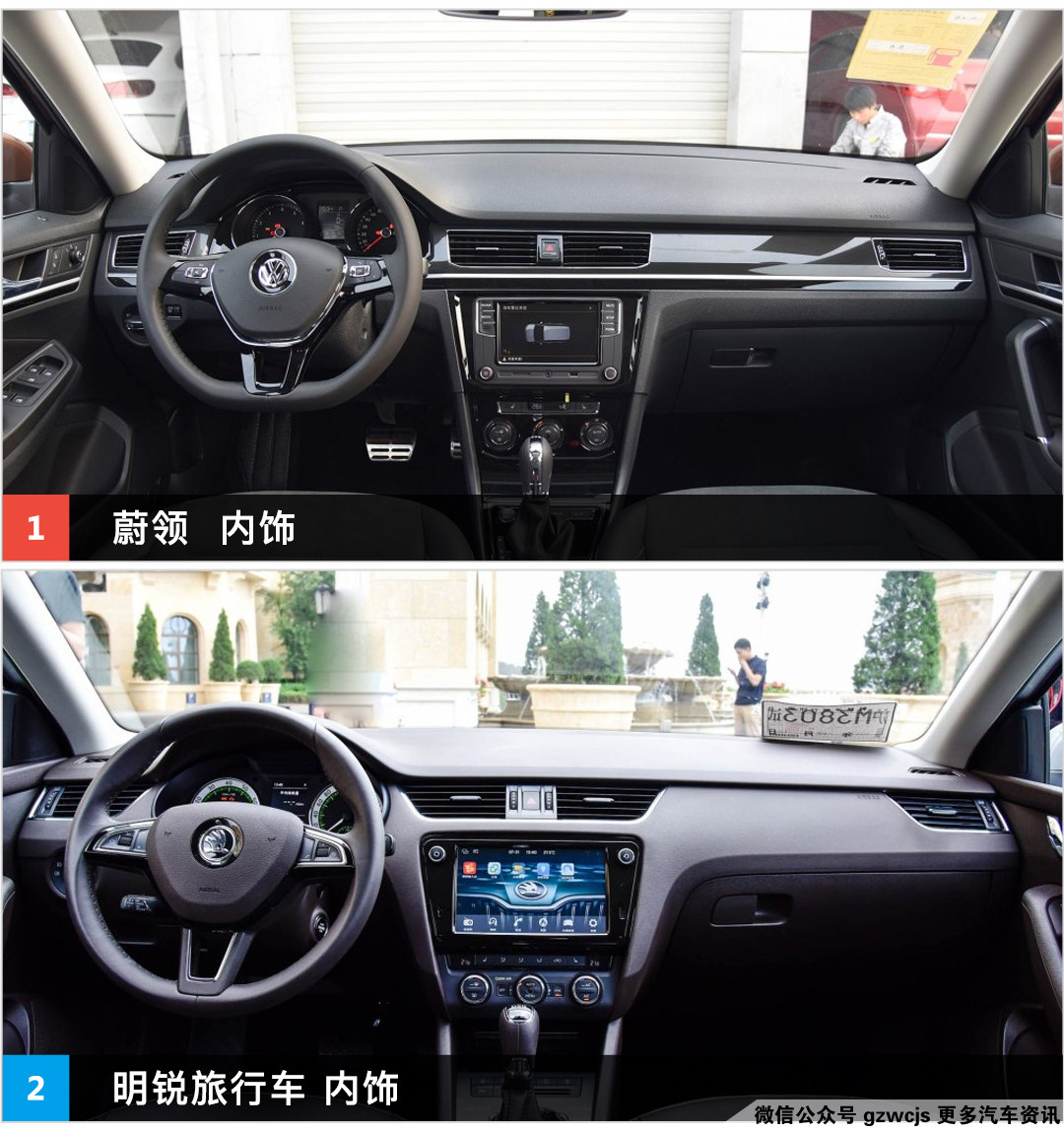 以两车的入门版对比,虽然蔚领的指导价贵了1000块,但配置多了全景天窗、胎压监测、车身稳定系统、定速巡航,明锐旅行车只多了9英寸中控大屏和LED日间行车灯,很明显蔚领的配置更吸引。