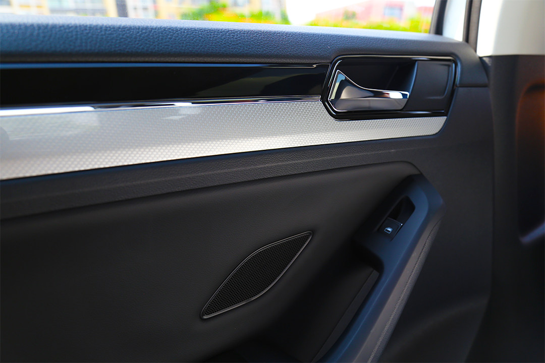 套娃式的造型大众玩得最溜,典型三条银线进气格栅看起来非常协调,前杠用镀铬饰条点缀,给人一丝大气的感觉。