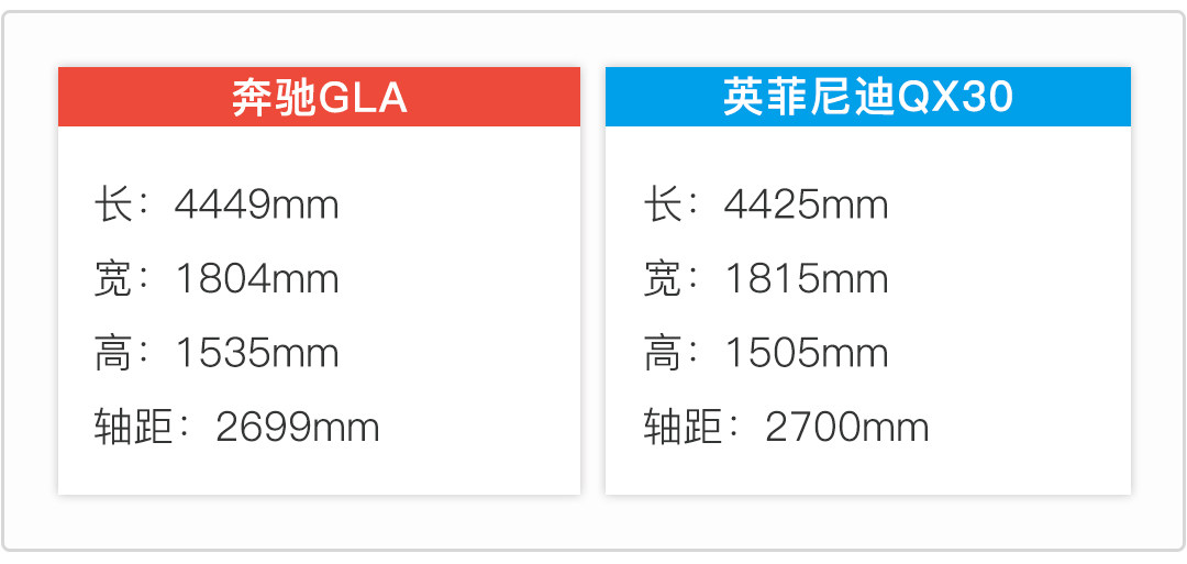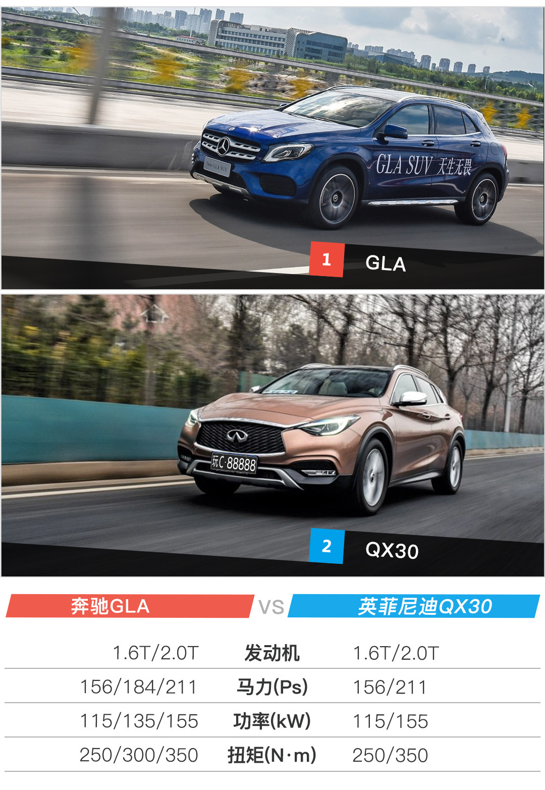 平台化战略的好处,让不少厂商都尝到了甜头。不仅能让车型降低制造成本,还能在投放时间上抢占先机。我们今天要聊的奔驰GLA和英菲尼迪QX30正是平台化大军里的一员,相同的平台,相同的目标人群让本是同根生的它们成为了竞争对手。下面我们通过对比看下它们各自的实力到底如何。